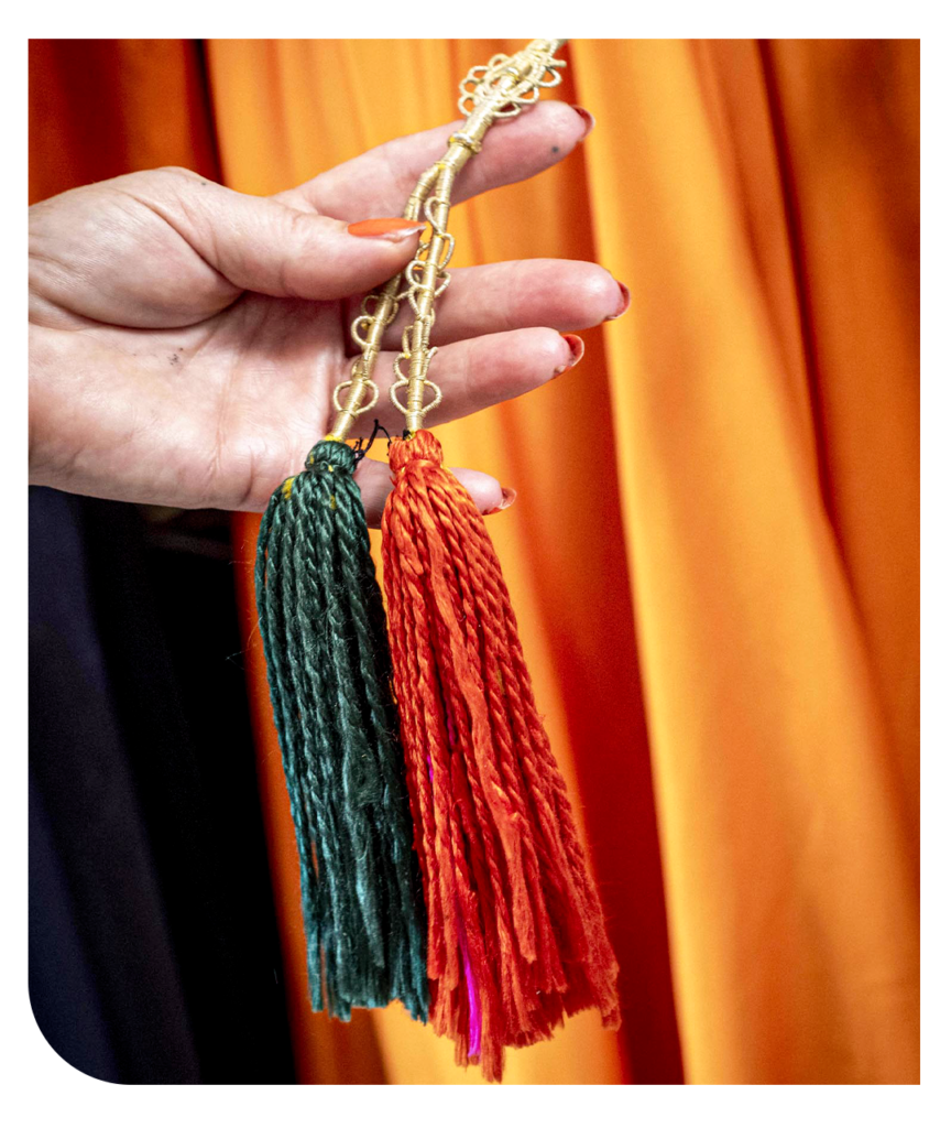Travailleuse acharnée et profondément studieuse, Lamia a bâti son parcours avec exigence. Lorsqu’on la rencontre aujourd’hui dans son atelier — une extension naturelle de sa maison— elle est absorbée par la finalisation d’une commande. Chaque geste est précis. Entre deux points غرزة, elle prend le temps de se livrer sur les origines de sa passion et l’essence de son métier : « La tradition revient en force, elle a le vent en poupe.